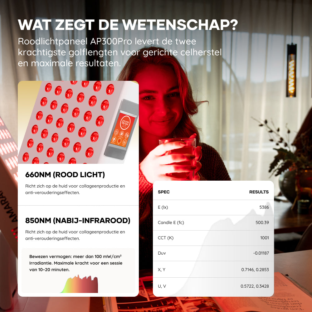 Krachtige, thuisgebruikbare roodlichttherapie die je huid, herstel en energie ondersteunt.