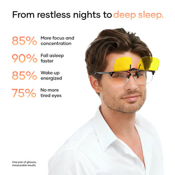 Verander elke bril in een blauwlichtfilter met onze premium clip-on lenzen. Perfect voor werk, gamen en avonduren achter het scherm.