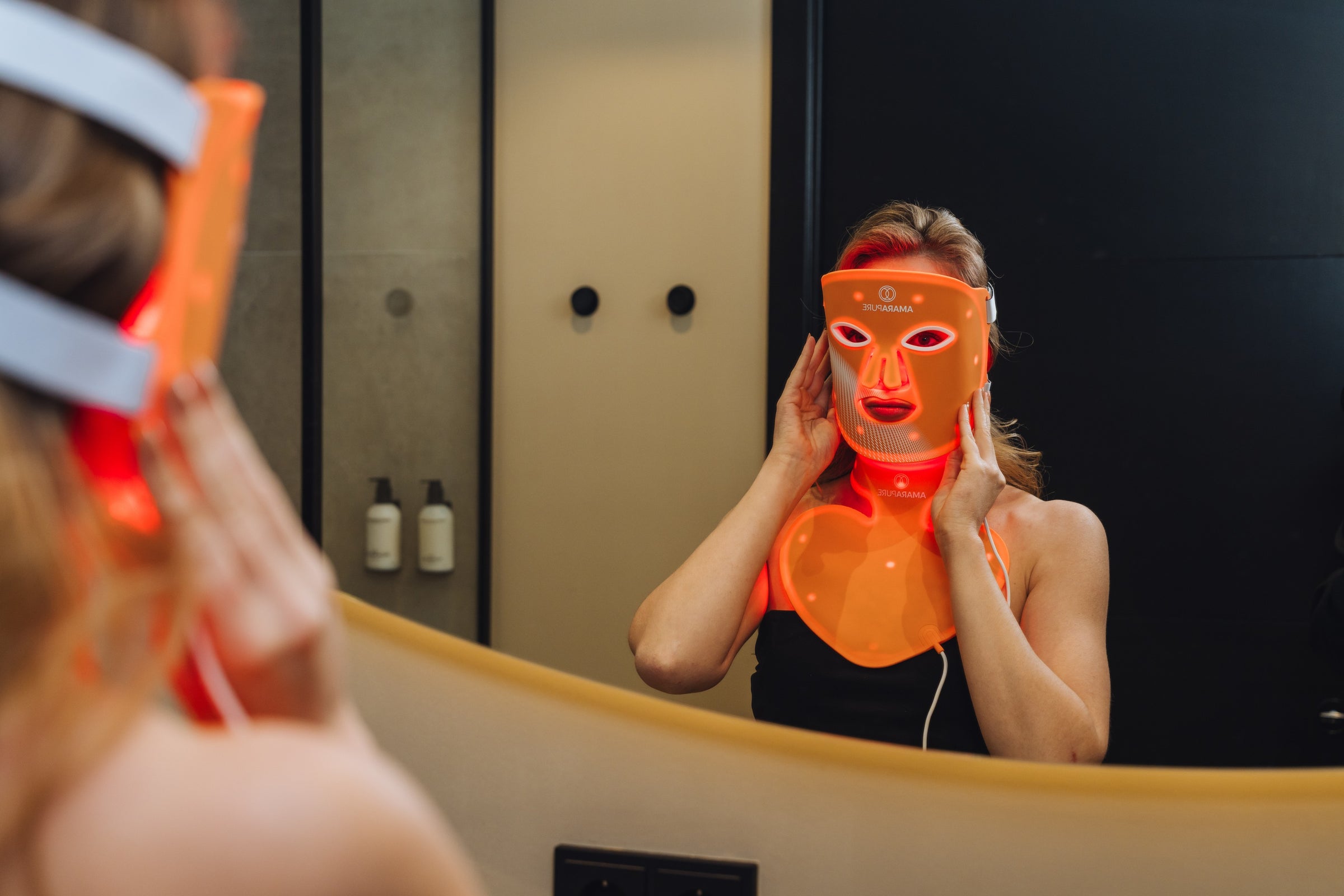 Het roodlichtmasker stimuleert de collageenproductie en verbetert de huidstructuur. Je huid voelt steviger, gladder en zichtbaar frisser – elke dag opnieuw.