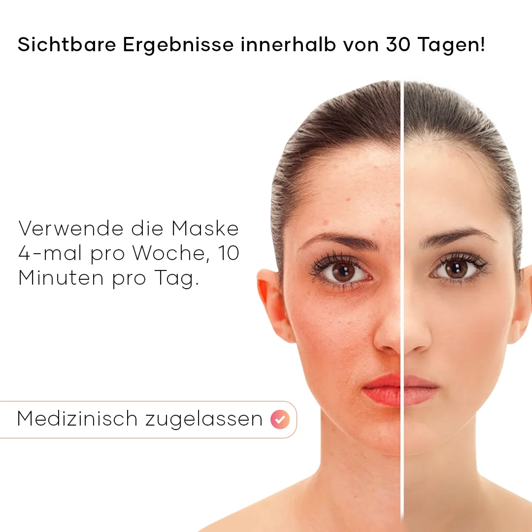 LED-Licht hilft Akne und Rötungen reduzieren durch Beruhigung der Haut und Beschleunigung des Heilungsprozesses. Es fördert eine egale Haut und reines Aussehen.