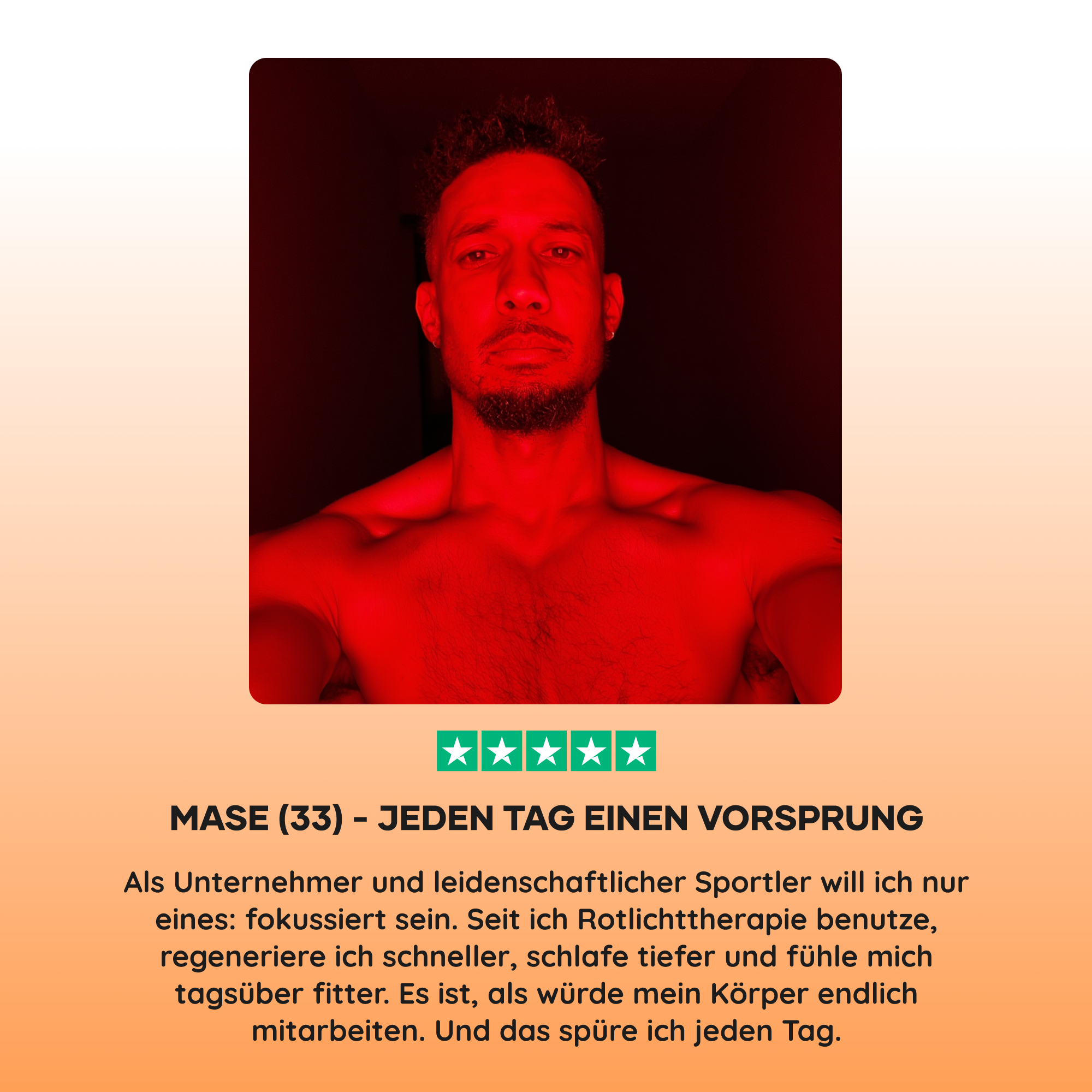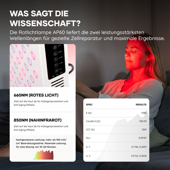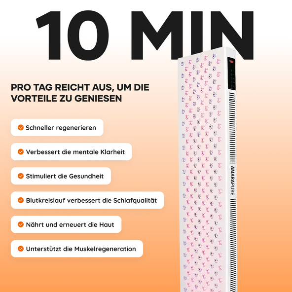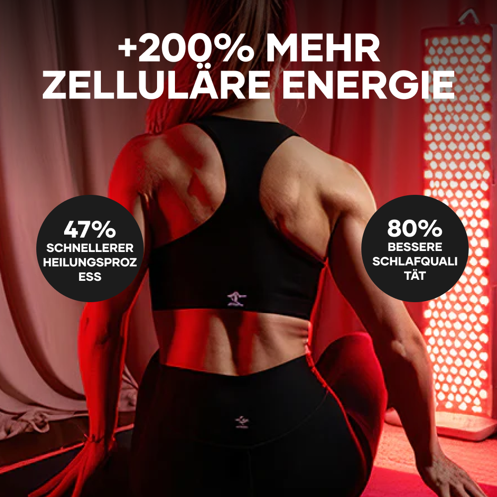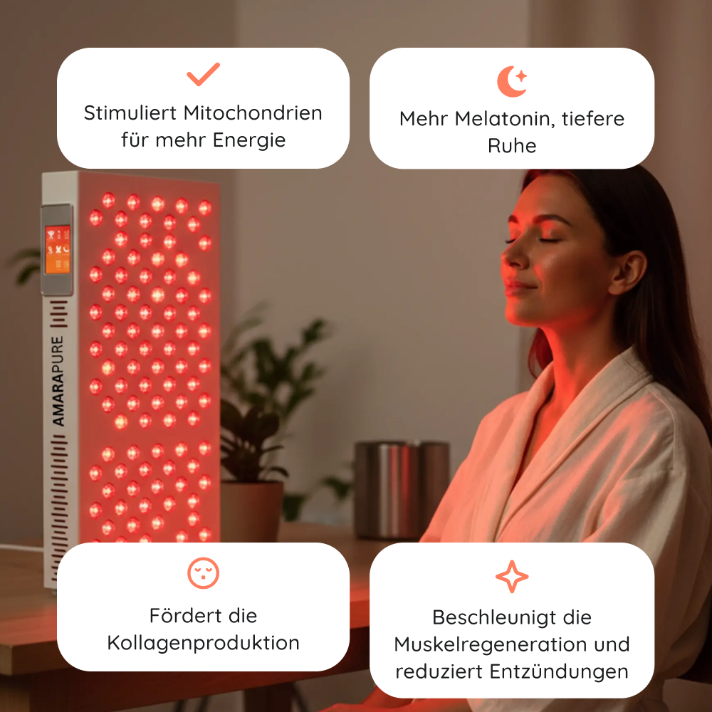 Leistungsstarke Rotlichttherapie für zu Hause, die Ihre Haut, Regeneration und Energie unterstützt.