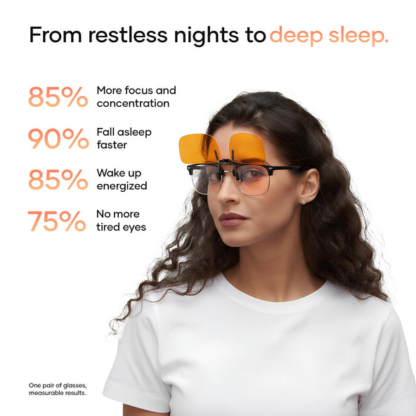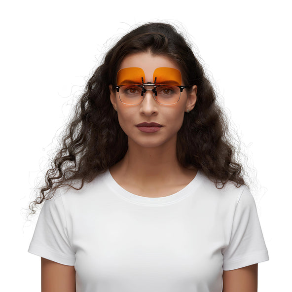 Turn any pair of glasses into blue light filters with our premium clip-on lenses. Perfect for work, gaming, and evening hours behind the screen.