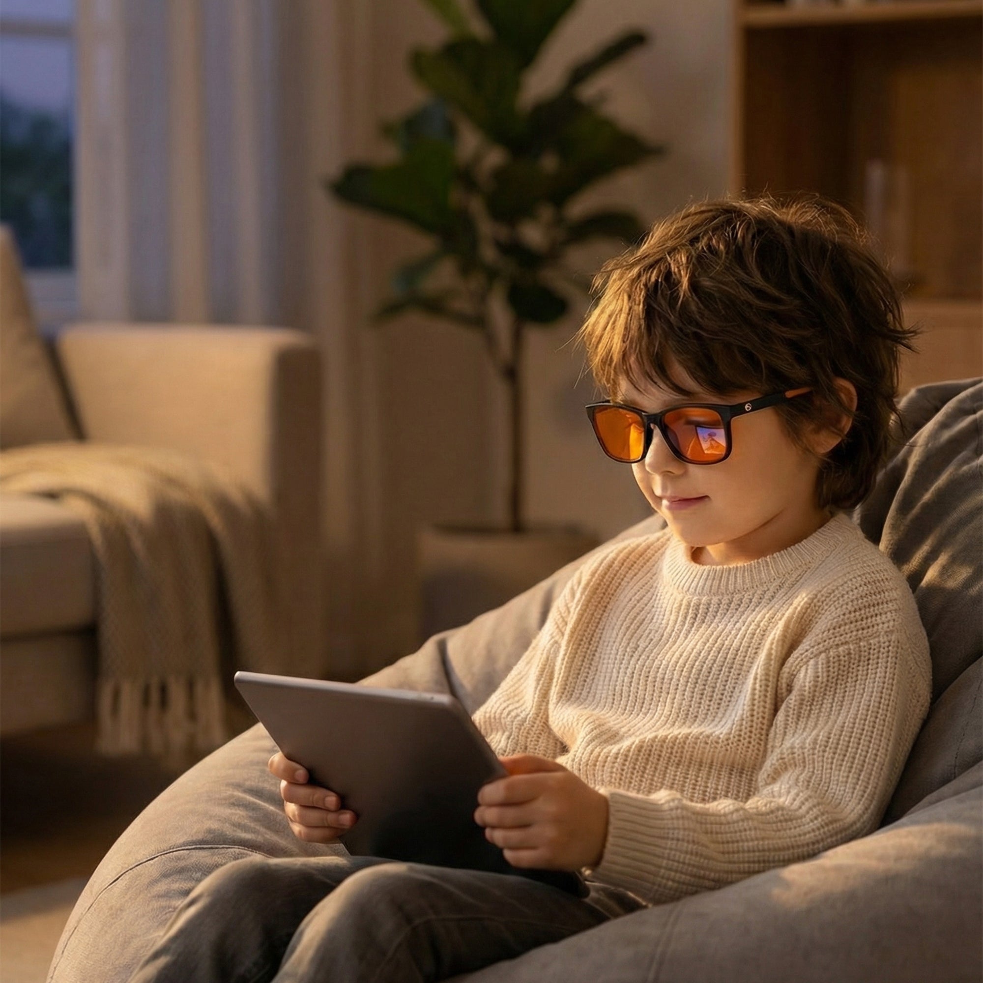 Blue light keeps children awake. With our glasses, they fall asleep faster and wake up more rested.