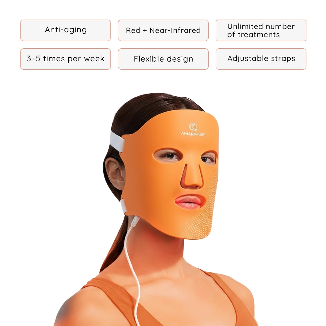 The LED light helps reduce inflammation, calm acne, and even out the skin tone. Ideal for a clear, healthy glow.