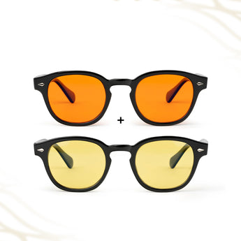 Met de AmaraPure All-Day Protection Bundle ontvang je zowel de Daygold als de Midnight blauwlichtbril. Samen bieden ze volledige bescherming voor je ogen, je focus en je slaap — precies op de momenten dat je het nodig hebt. Ideaal voor iedereen die veel tijd doorbrengt voor schermen, zowel overdag als in de avond.