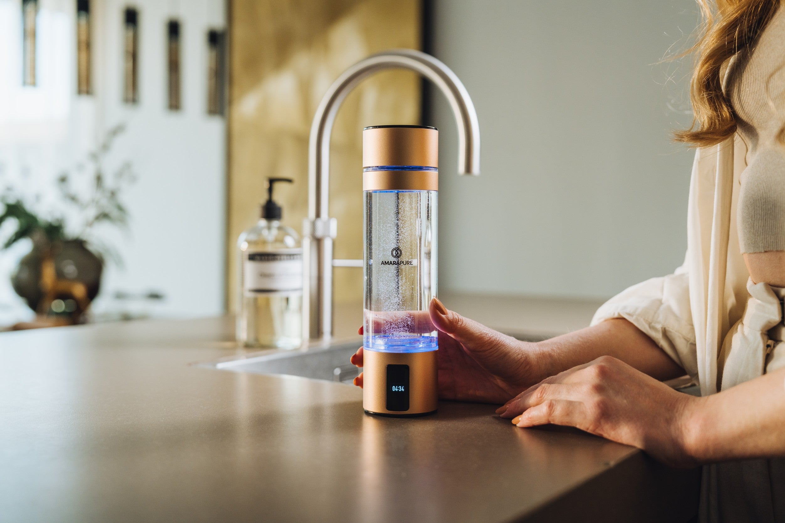 Ontgrendel de kracht van water. De AmaraPure™ Aman verrijkt je drinkwater in slechts 3 minuten met moleculaire waterstof – voor meer energie, sneller herstel en diepe celverzorging. Compact, stijlvol en altijd bij de hand.